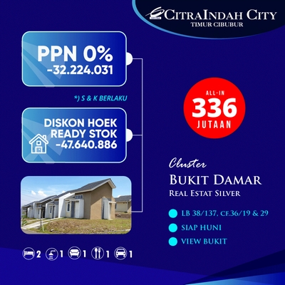 BIG SALE Siap Huni Hoek Murah. 36/90 + Hoek.LB/LT 36/90+47m menjadi tipe 38/137m. CF.36/50. Bukit Damar, Real Estat SIlver. Tersedia Internet Cepat Fiber Optik. Hill View dan City View. Panorama malam hari menawan.